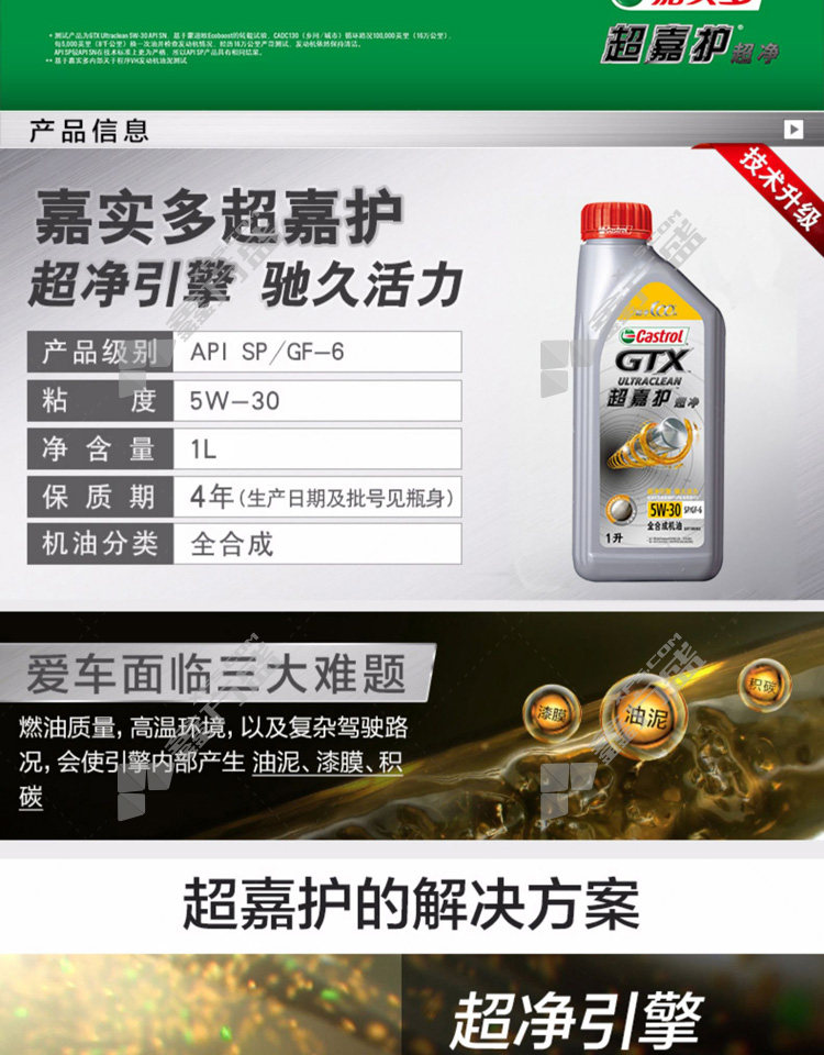 castrol GTX ULTRACLEAN chaojiahu ultra-clean gasoline engine oil 5 W-40 SP 4L 5W-30 SP/GF-6 1L
