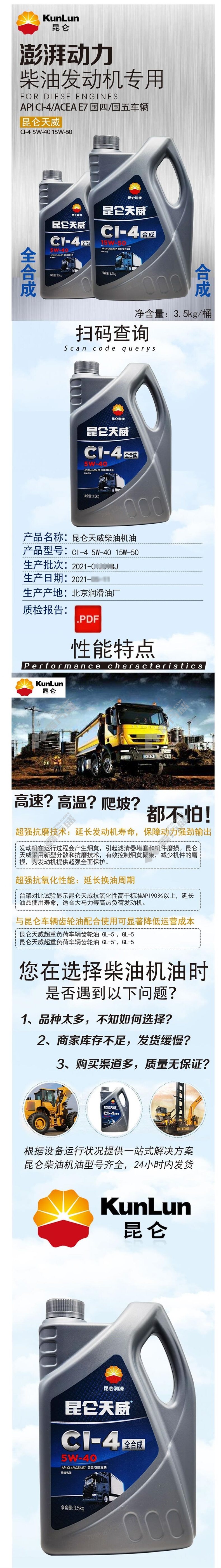 kunlun tianwei synthetic diesel engine oil CI-4 15W-50 16kg CI-4/15W-50/170kg
