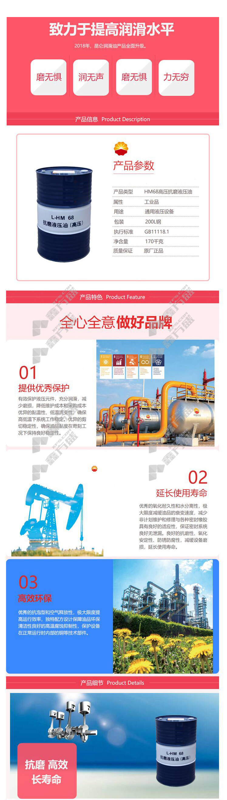 kunlun economical anti-wear hydraulic oil L-HM-68 170kg no specifications