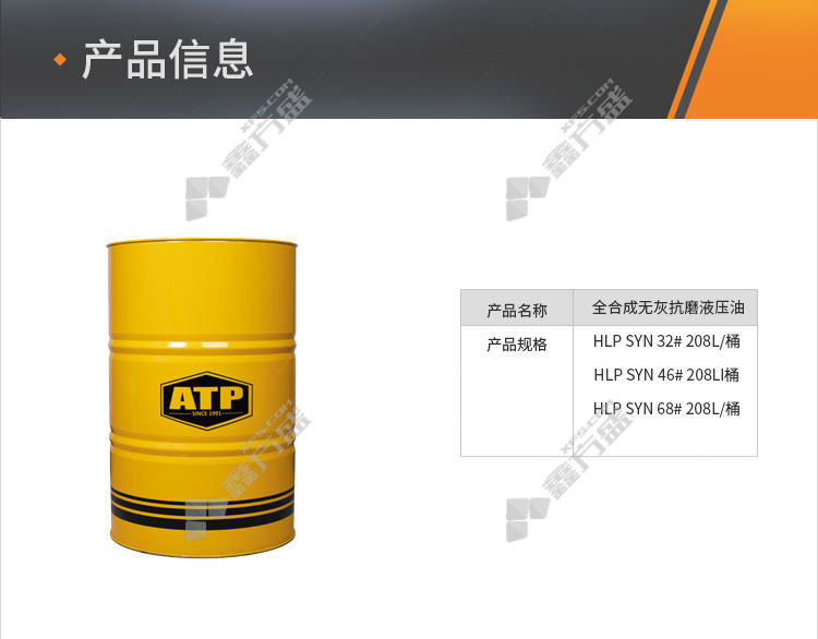 ATP fully synthetic ashless anti-wear hydraulic oil HLP SYN 32# 208L/bucket HLP SYN 32# 208L/bucket