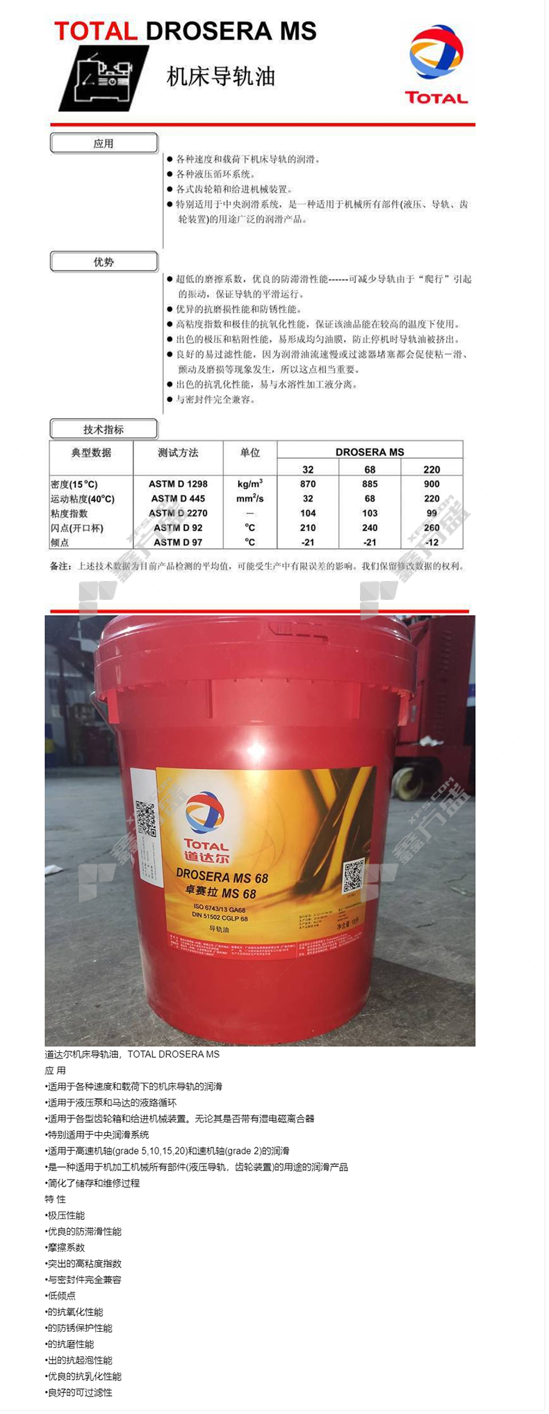 total machine tool lubricants DROSERA MS 68 18L no specifications