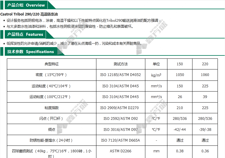 castrol high temperature chain oil 18 kg/bucket 18 kg CH TRIBOL 290/220 no specifications