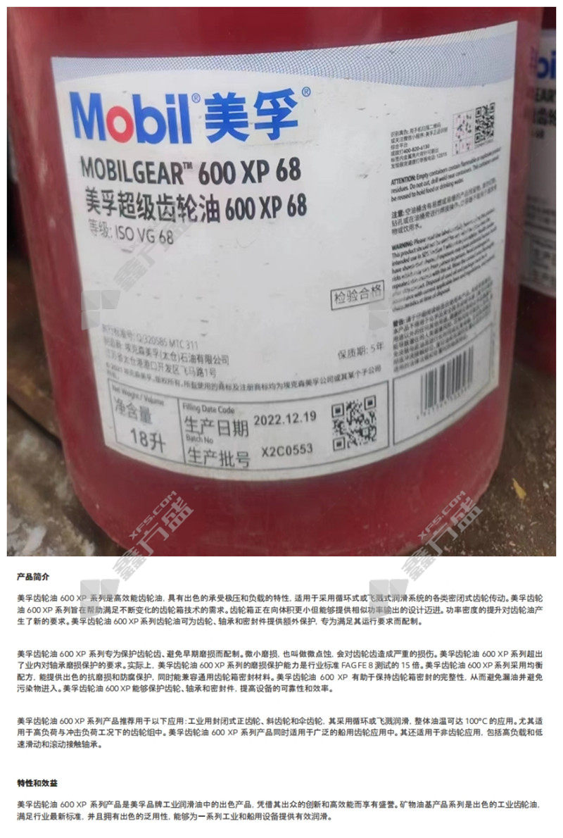 mobil gear oil Mobilgear 600 XP 68 18L/bucket has no specifications