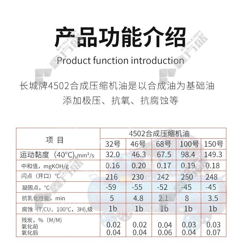 great wall lubricating synthetic compressor oil 4502-68 no. 16 kg/bucket has no specifications