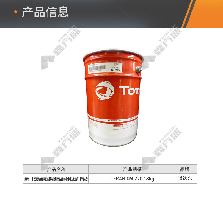 total's new generation calcium sulfonate complex-based high-temperature water-resistant extreme pressure grease CERAN XM 220 18kg no specifications