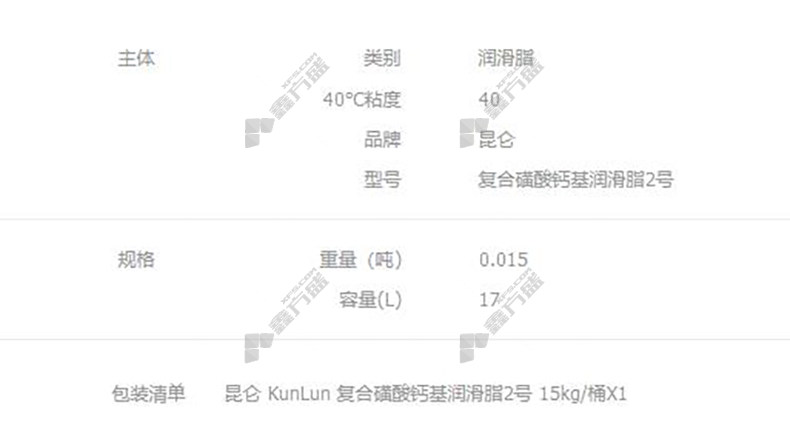 kunlun calcium sulfonate complex base grease 2# calcium sulfonate complex base 2# 15 kg no specifications