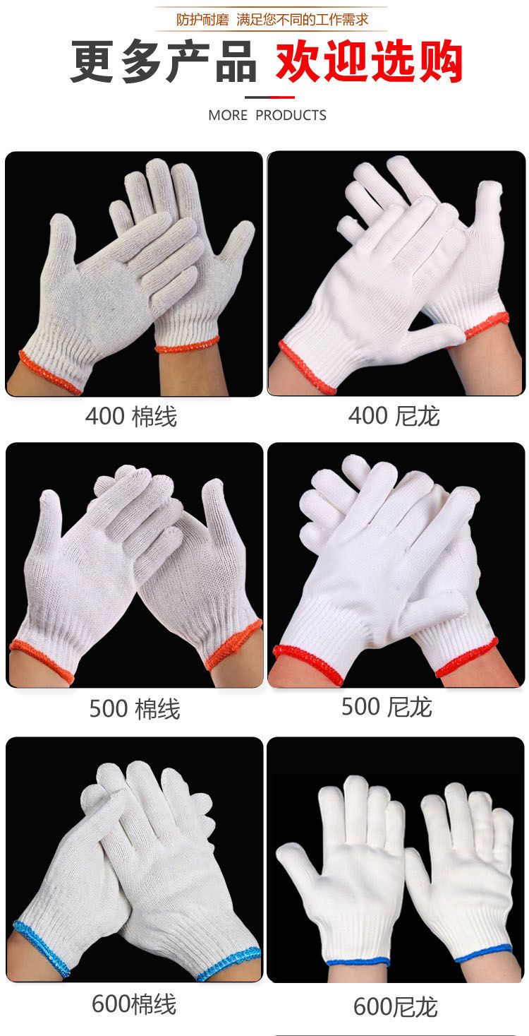labor protection gloves wholesale wear-resistant white nylon thick non-slip cotton thread cotton yarn men's car repair site work white thread gloves thin black and gray +24double (48 pieces)