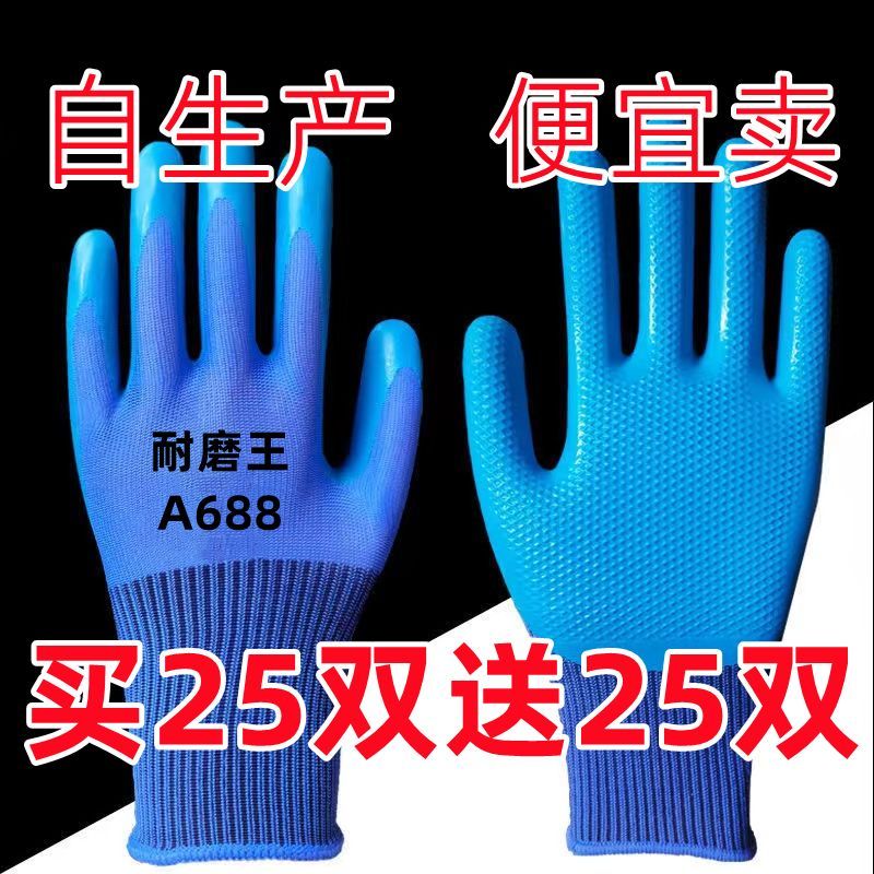work gloves A688 wear-resistant thickened latex embossed non-slip waterproof construction site work protection general work authentic A688 embossed wear-resistant +super wear-resistant +clear