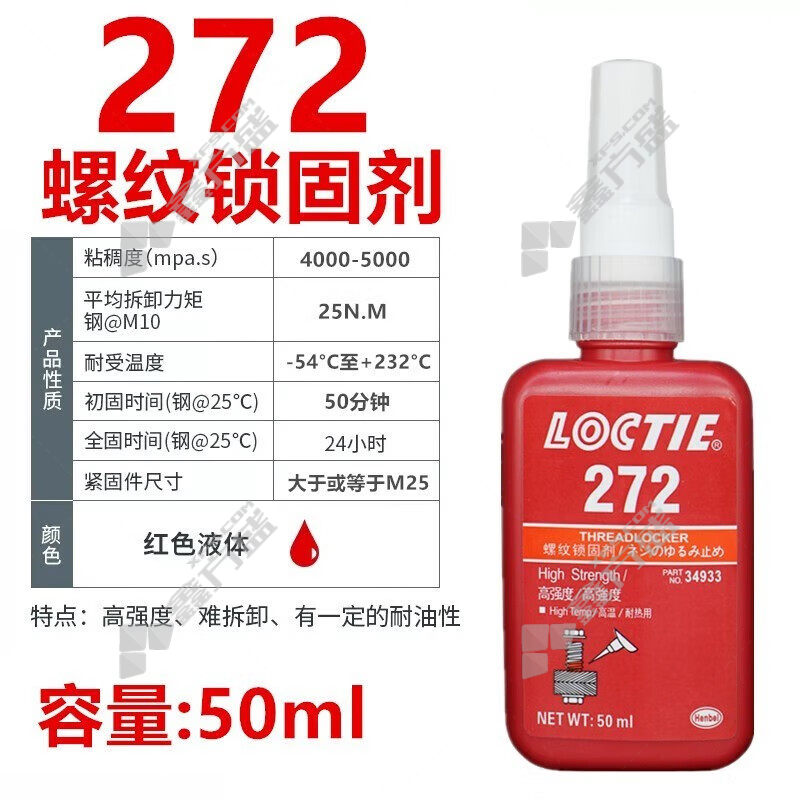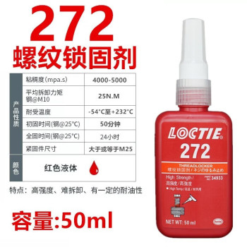 loctite thread locking adhesive 272 50 ml large bolts, high strength, high temperature resistance, no specifications