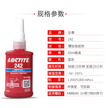 loctite thread locking agent 242 50 ml blue no specification