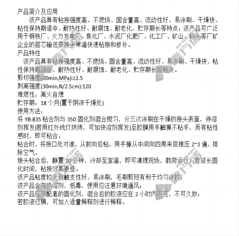 huacaiwan's new flame-retardant conveyor belt adhesive HCW-835 1000 g/ting plus 100 g/bottle no specification