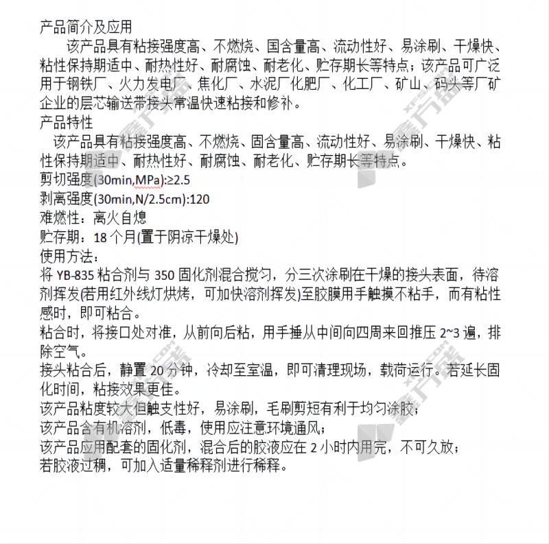 huacaiwan's new flame-retardant conveyor belt adhesive (cold )contains 350 curing agent HCW-835 1000 g/ting plus 100 g/bottle no specification
