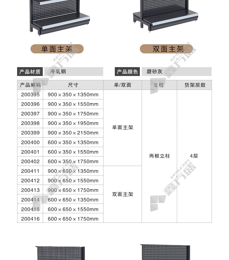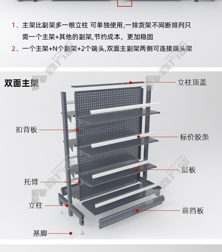 ansairui supermarket shelf display rack double-sided sub-rack 4 layers 900 mm*650mm*1750mm terminal with side net 4 layers 600 mm*600mm*1750mm
