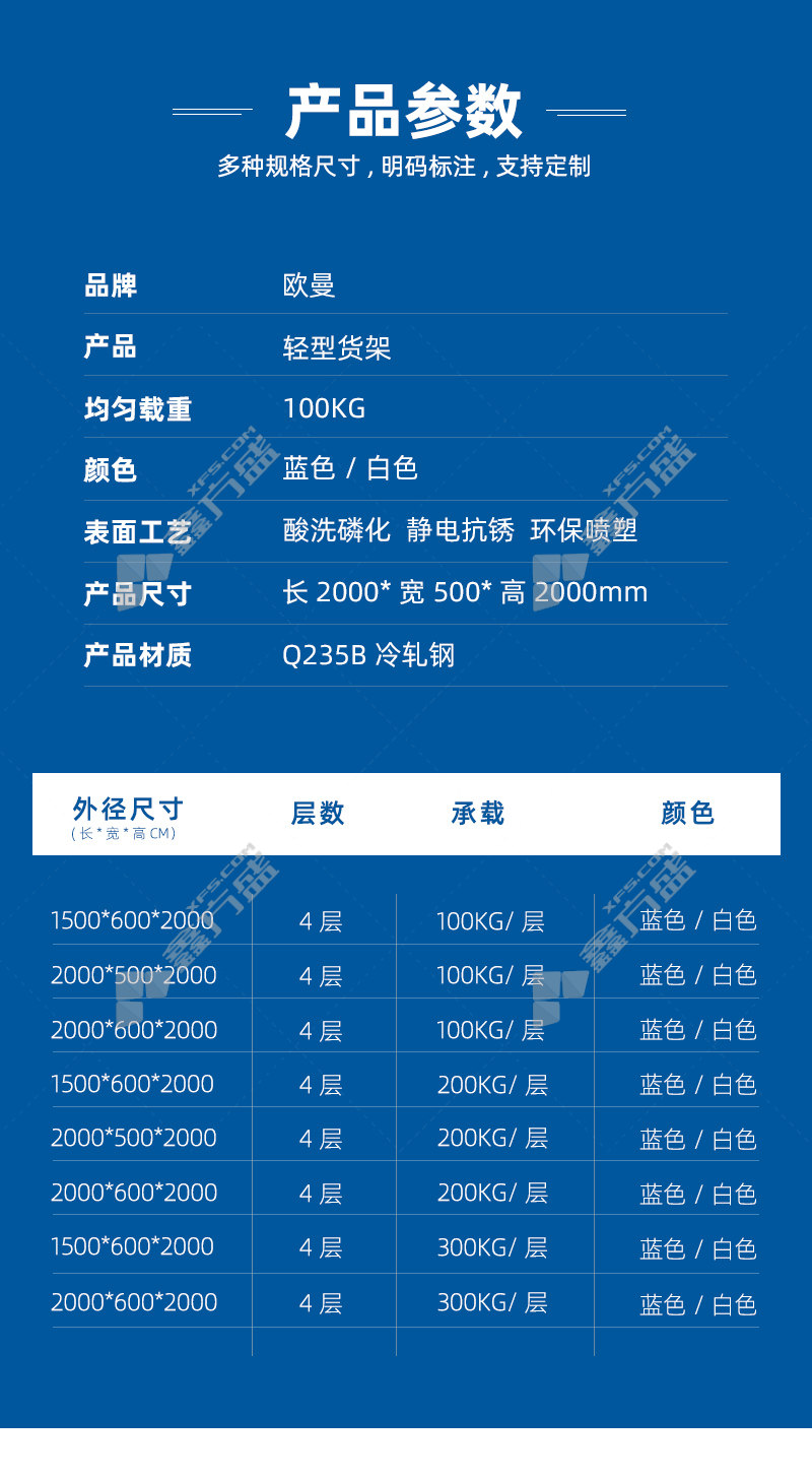 auman 4-layer light laminate shelf sub-frame 100 kg 1500mm*600mm*2000mm 4 layer 100 KG white 2000 mm*500mm*2000mm 4 layer 100 KG white