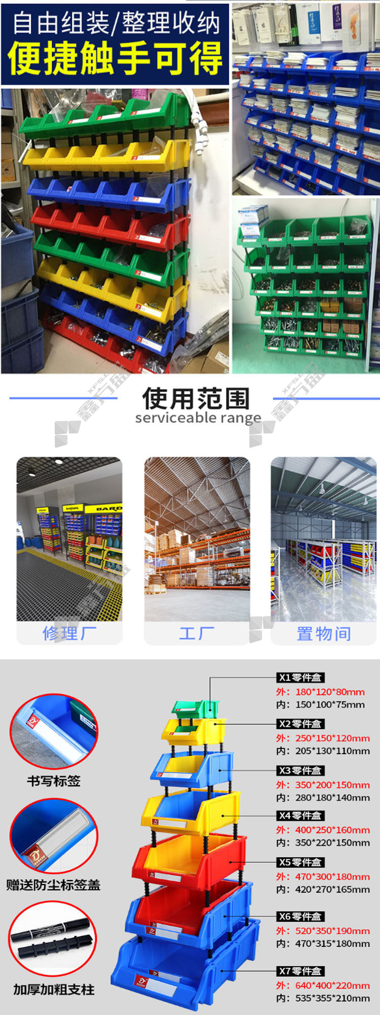 jingdu shelf parts box thickened oblique style blue 250 *150*120mm 400*250*160mm