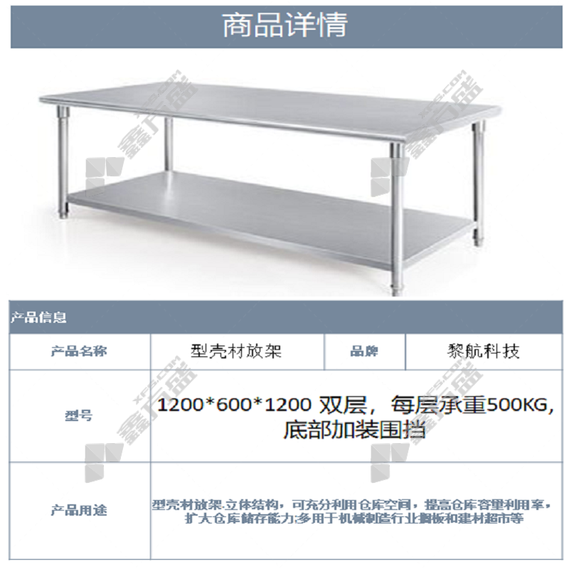 lihang technology shell rack 1200 *600*1200 double layer, each layer can bear 500 KG, there is no specification for installing a fence at the bottom.