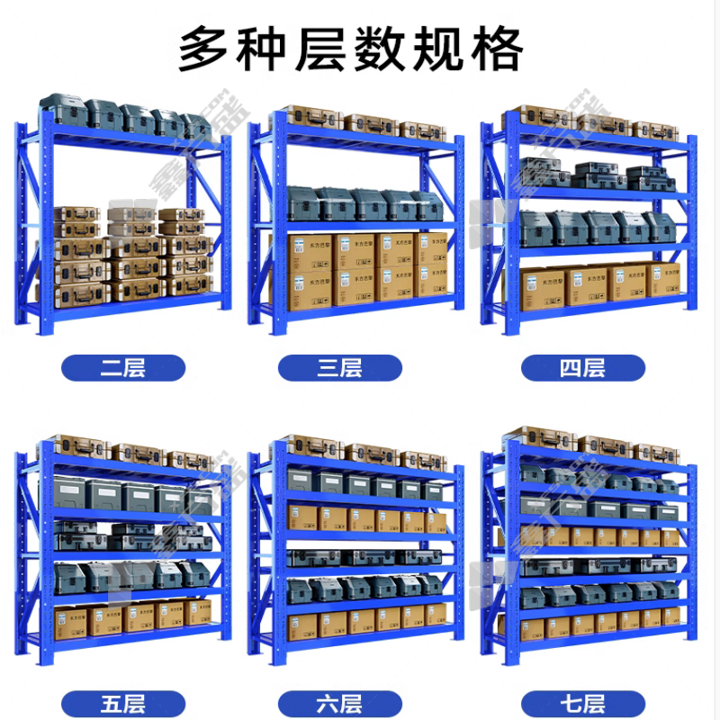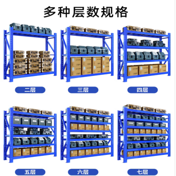 YW thickened storage warehouse shelves multi-layer express supermarket home basement storage racks heavy-duty display cargo iron rack 150 *50*200 four floors 430 KG second floor of blue main frame: length 200 *width 60 *high 120 cm