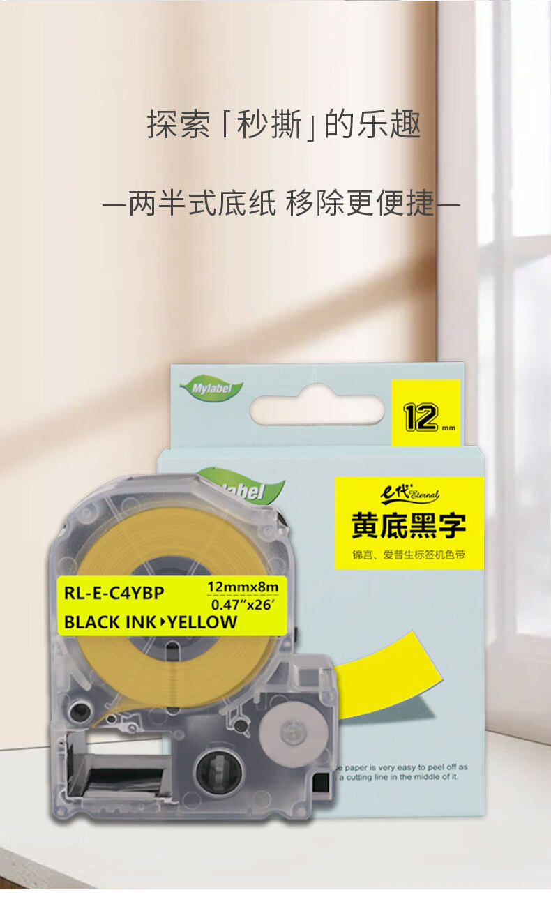 e generation label ribbon suitable for epson 9 mm label paper with black text on yellow background LW-K400 label machine 600 P 1000P C410 Z700 Z900 jingong printer LW-K400 no specifications