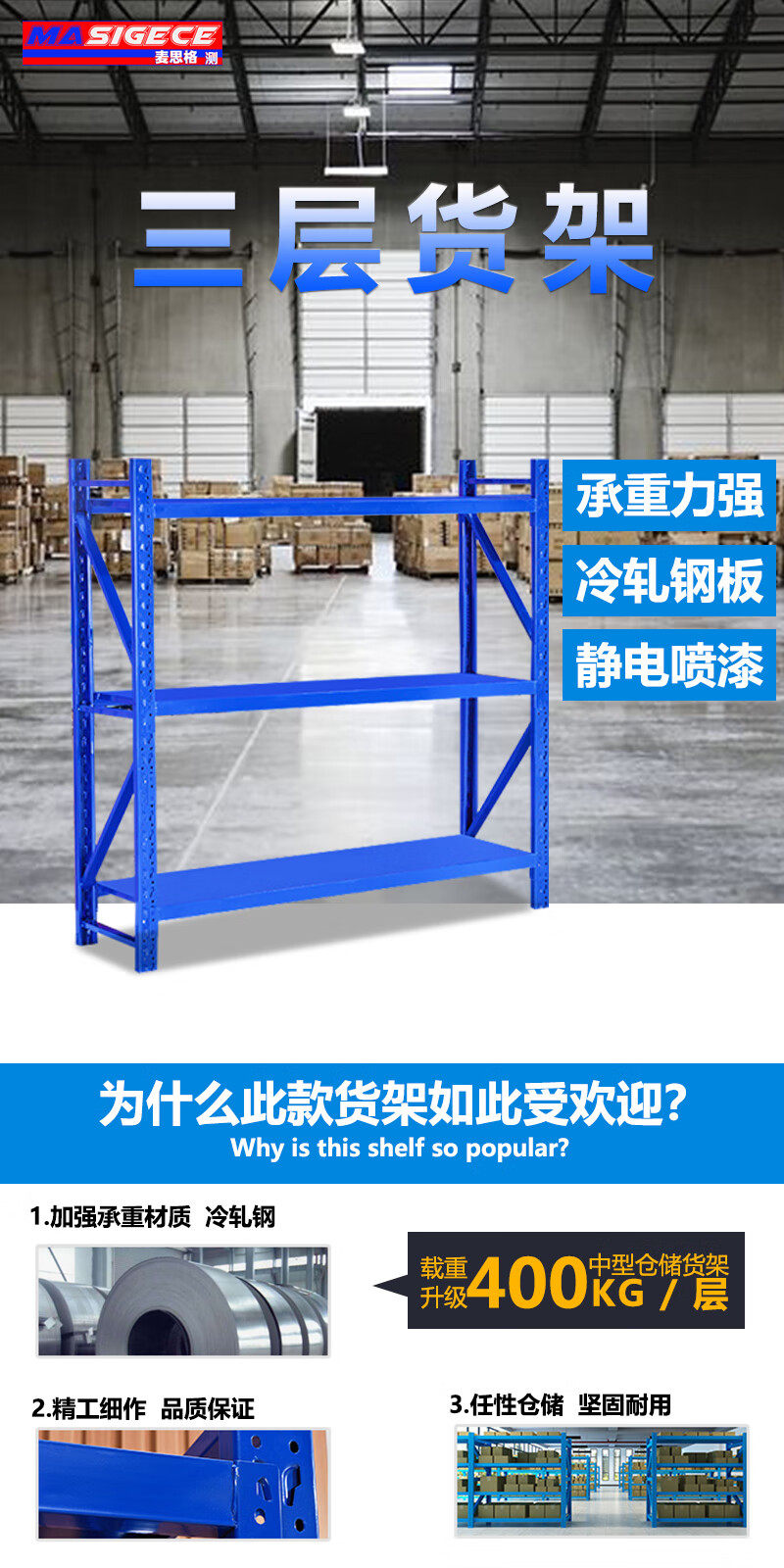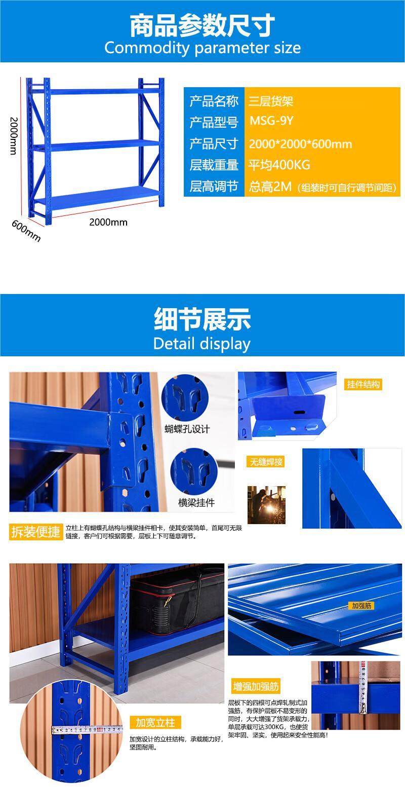 mesch test ( MASIGECE) MSG-9Y three-layer shelf 2000 *2000*600mm 400kg/shelf (price unit: group) combined layer type thickened cold-rolled steel plate blue MSG-9Y no specifications