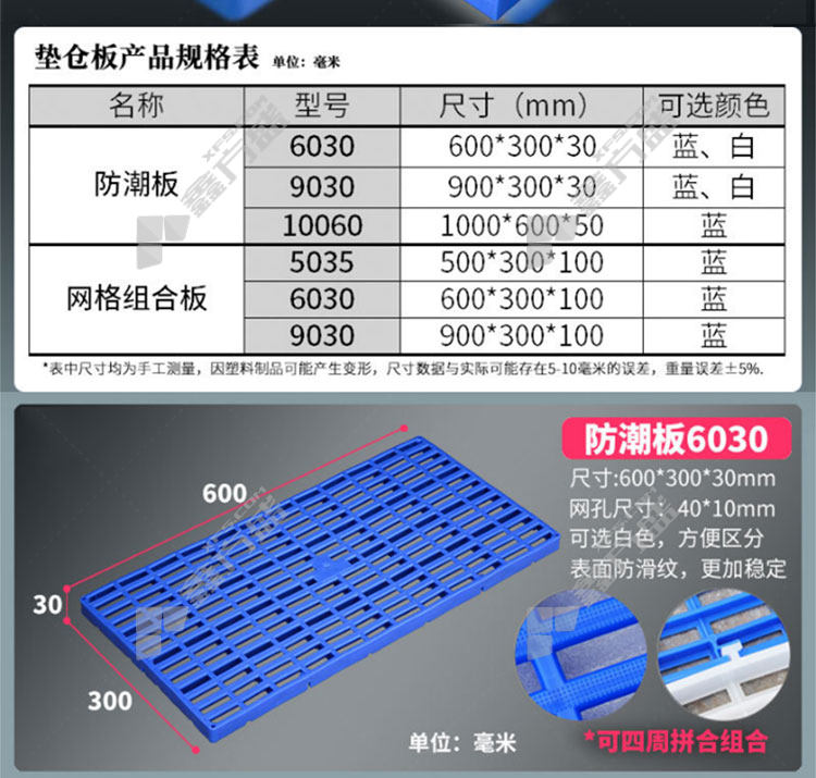 bingyu BYlj-272 plastic mesh splicing moisture-proof pad 1000 *600*50white 1000 *500*50blue