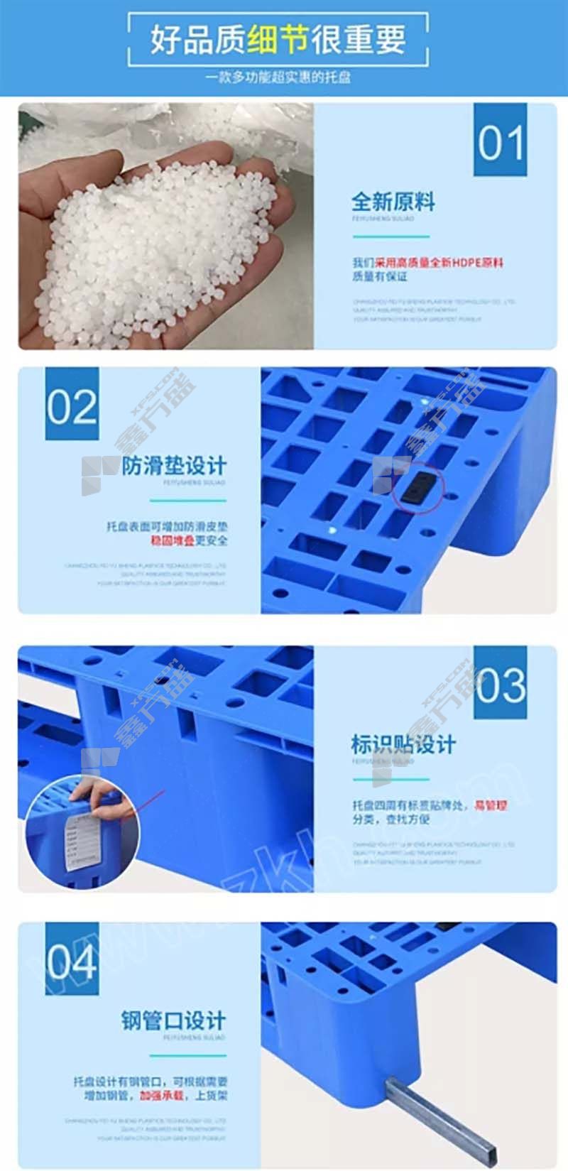 hengchuan plastic pallet tianzi grid (with 1.2 mm steel pipe ) common material (1200 *1000*150B)mm built-in 7 steel pipes with dynamic load 1.5 T static load 4 T new material 1200 mm*1200mm*150mm built-in 7 steel pipes with dynamic load 1.5 T static load 4 T