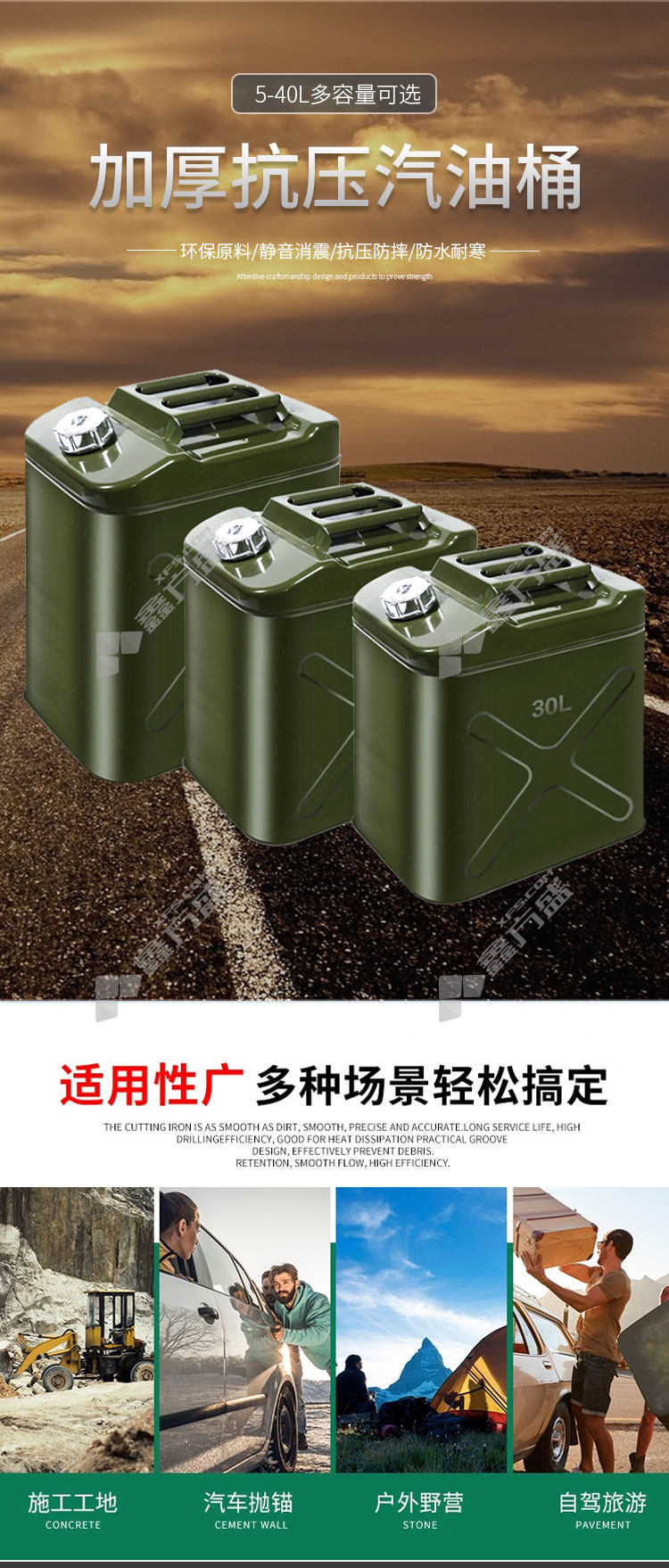 jin gu lao KCzy-95 industrial thickened iron gasoline barrel vertical flat barrel 10 L horizontal square barrel 40 L