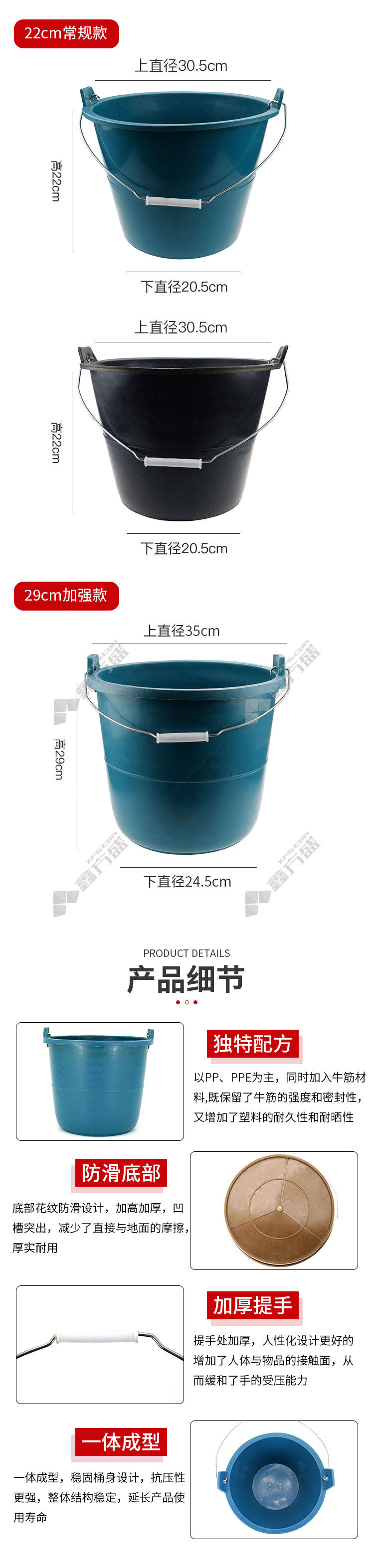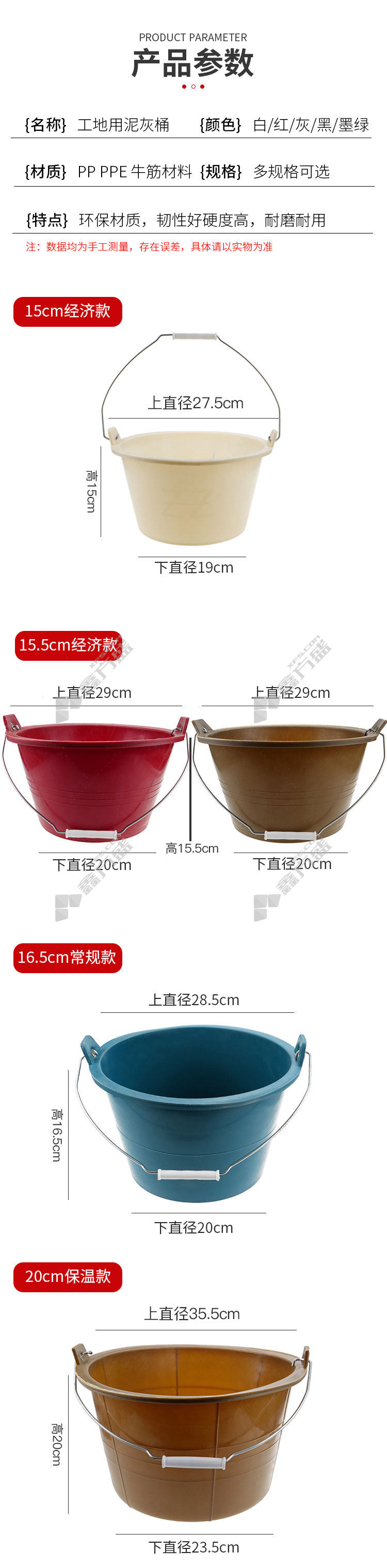 jin gu lao KCzy-123 beef tendon bucket for construction site 22 cm regular style dark green with handle 15.5 cm regular gray with handle