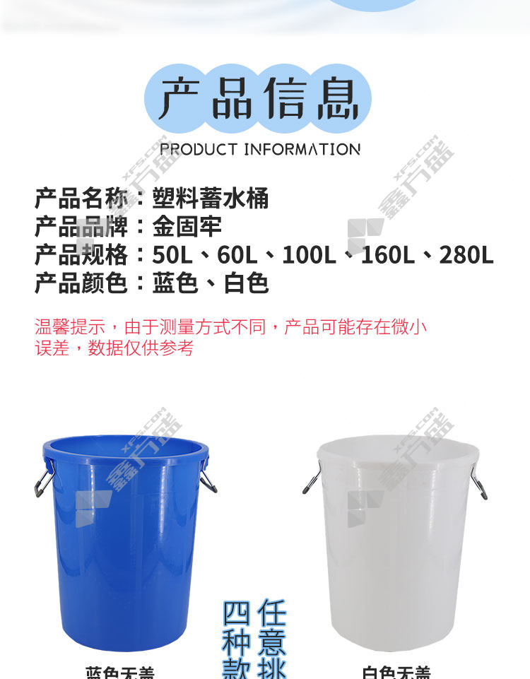 jin gu lao KCsy-03 plastic bucket thickened outdoor water storage bucket 100 L white with lid 100 L white without cover