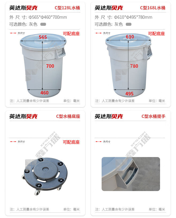 indas baker plastic bucket Φ445*Φ360*530mm 60L white Φ485*Φ395*575mm/80L/ash