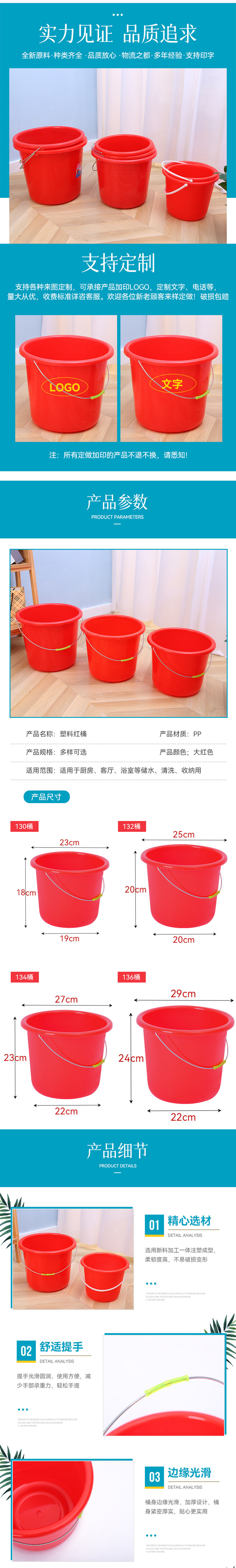 laiming plastic bucket 23 *18*19cm red no specification