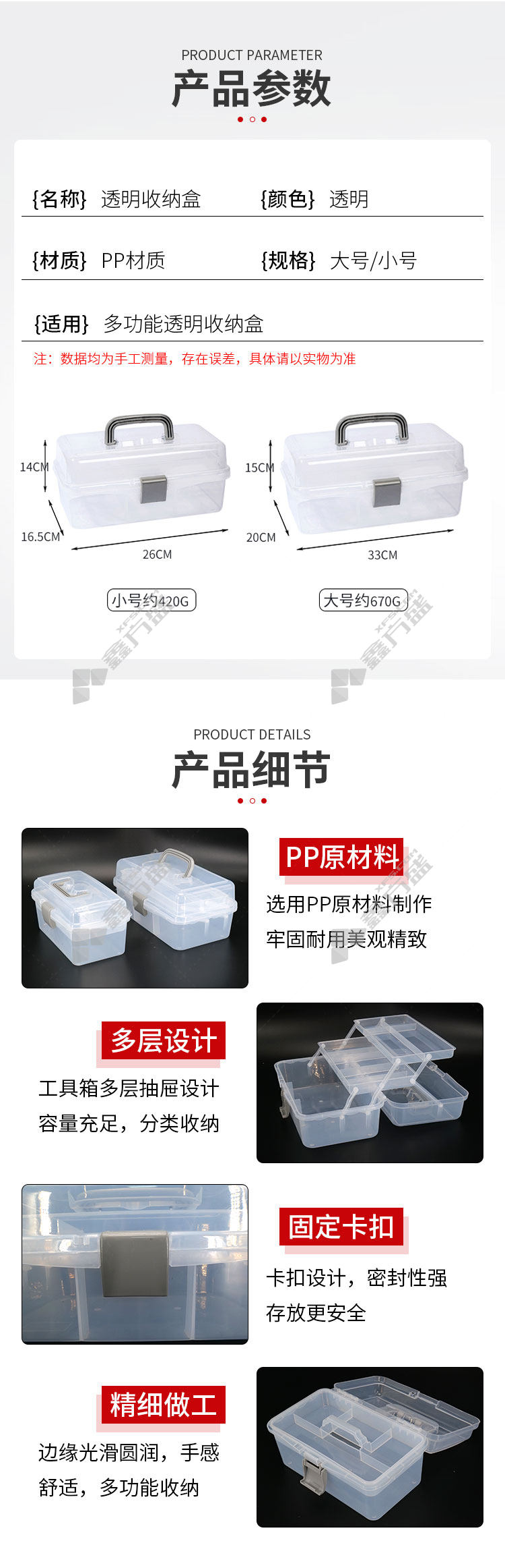 jin gu lao KCzy-125 plastic hardware tool box large size 33 *20*15cm color random number 26 *16.5*14cm color random