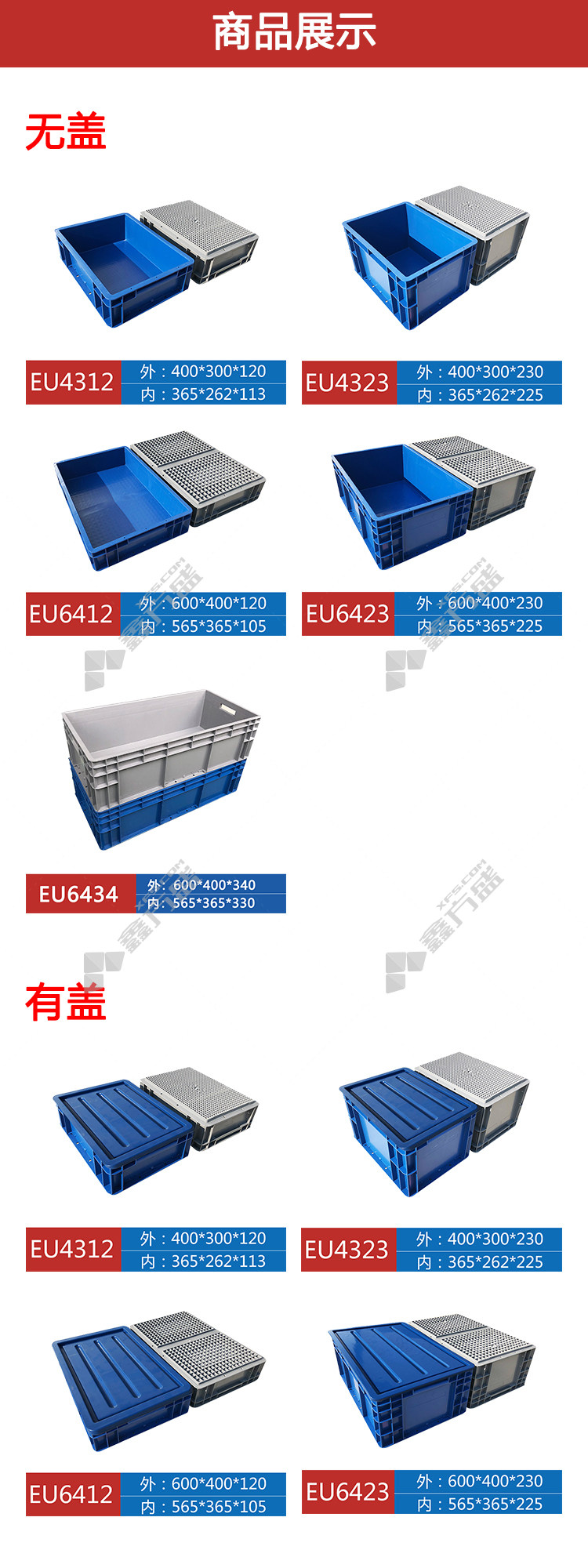 bingyu BY-401 EU logistics turnover box 400 *300*230covered gray 400 *300*120gray without cover