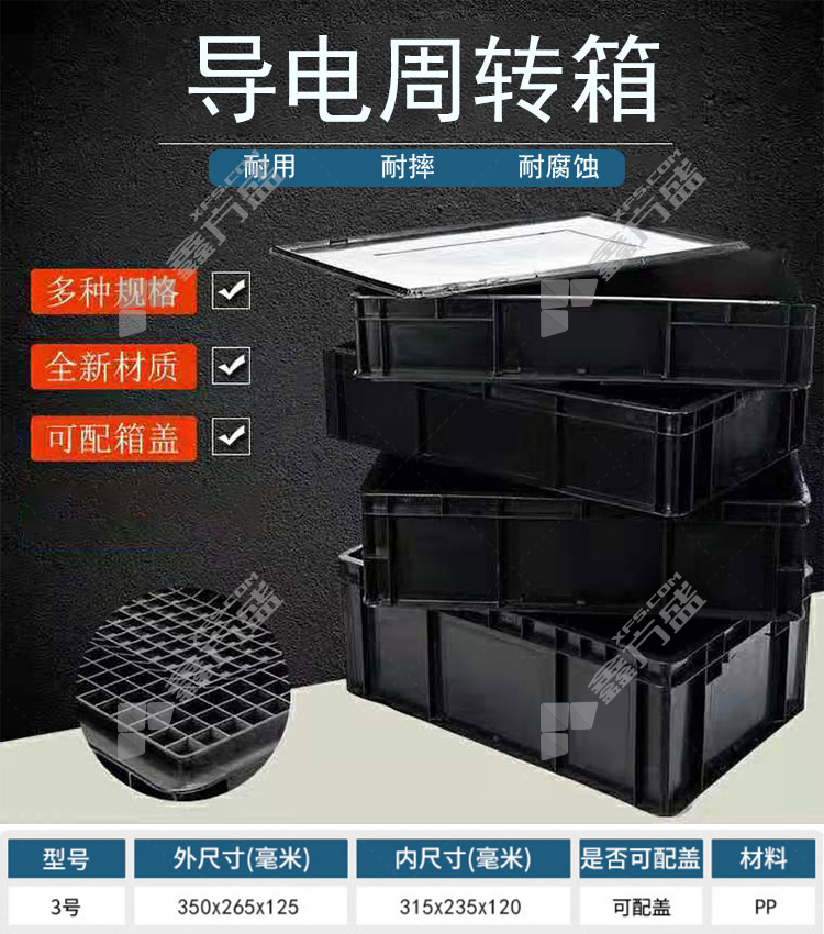 bingyu BYlj-152 anti-static black turnover box no. 4 with lid 410 *305*155 3no. with cover 350 *265*125