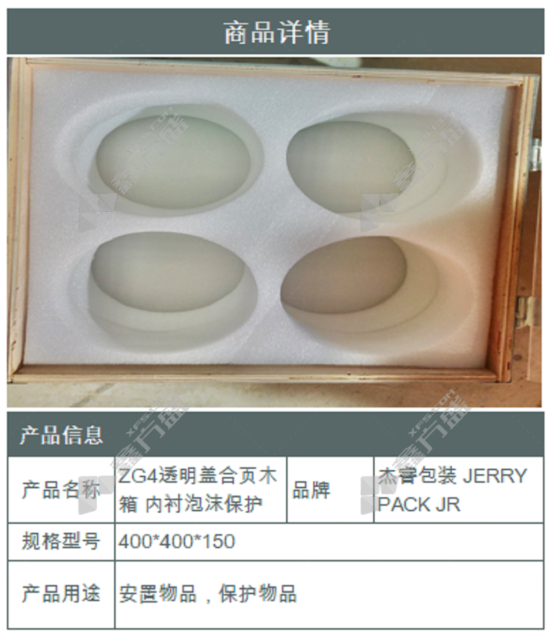 jerry packaging ZG4 transparent cover hinge wooden box lined with foam protection 400 *400*150 no specifications