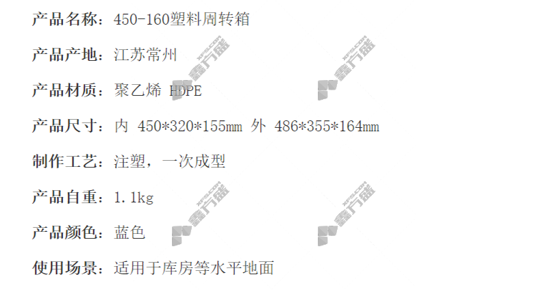 xuan sheng plastic turnover box thick box 450-160- B blue no specification
