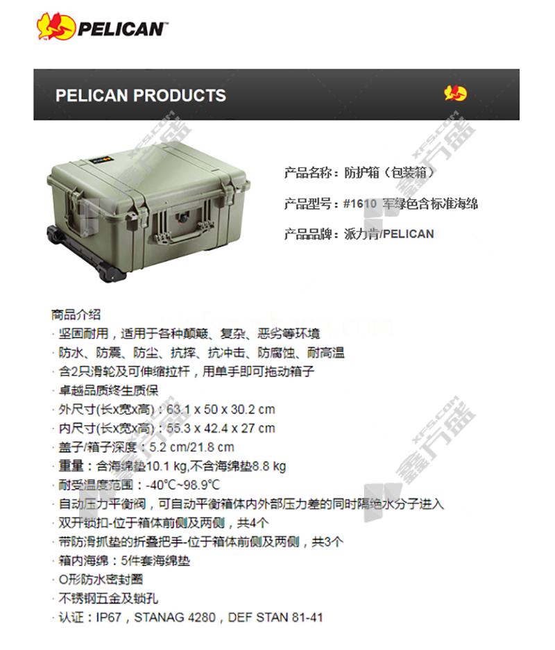 pelican protective box (packing box) 1610 military green, including standard sponge, no specifications
