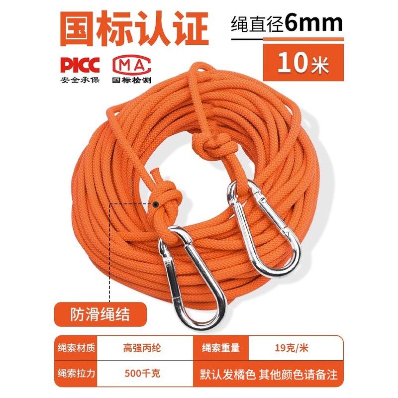 kanle outdoor climbing rope high-altitude operation safety rope national standard escape rope rescue rope special life rope [bearing 1000 pounds] 6 mm--10 rice