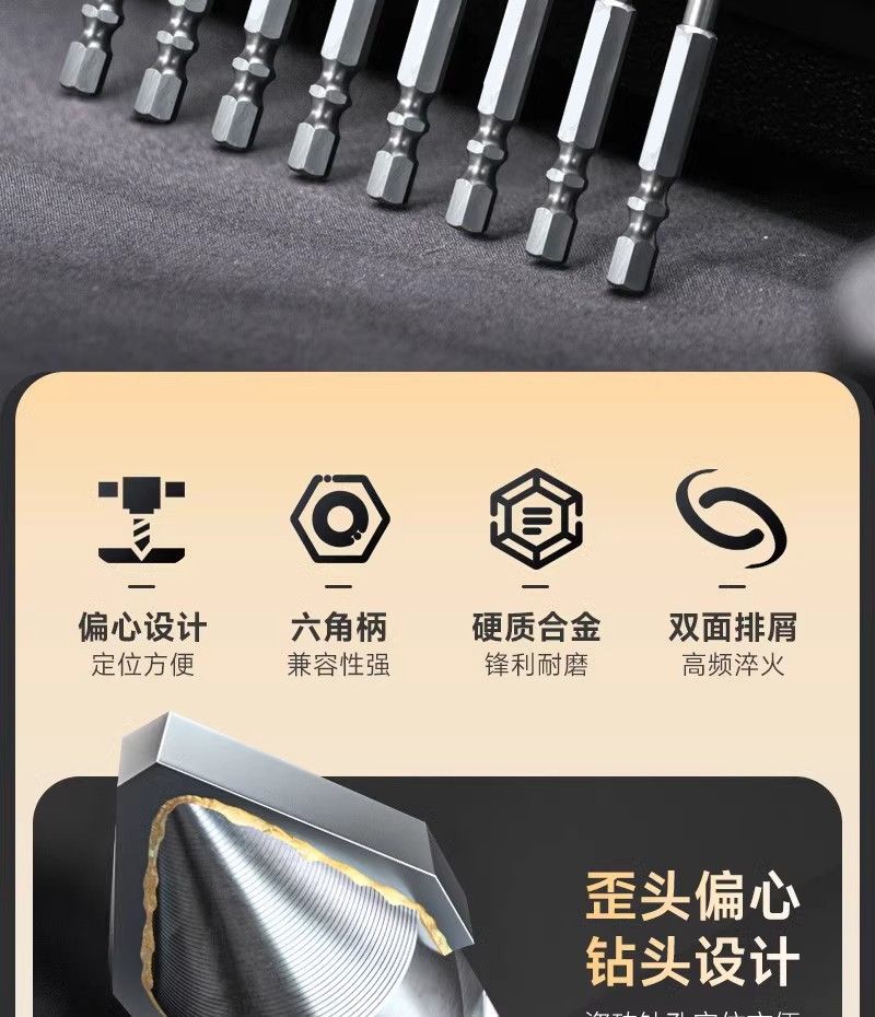 钻头收到有几天了,今天才来评价,前几天没时间试验,今天试验了,钻头不错,材质很硬,值得购买,下次还会回购的