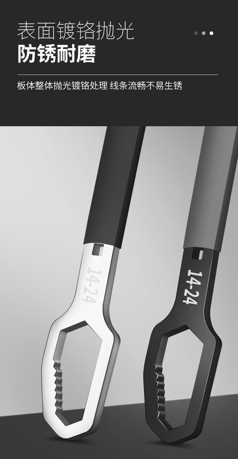 germany imported multi-function universal quick self-tightening wrench double-head plum blossom glasses wrench movable wrench multi-purpose universal self-tightening wrench (6-22 mm silver) rubber handle