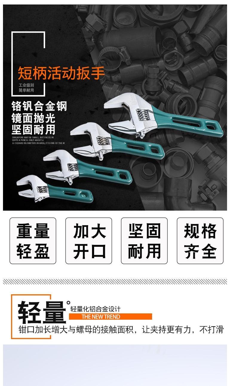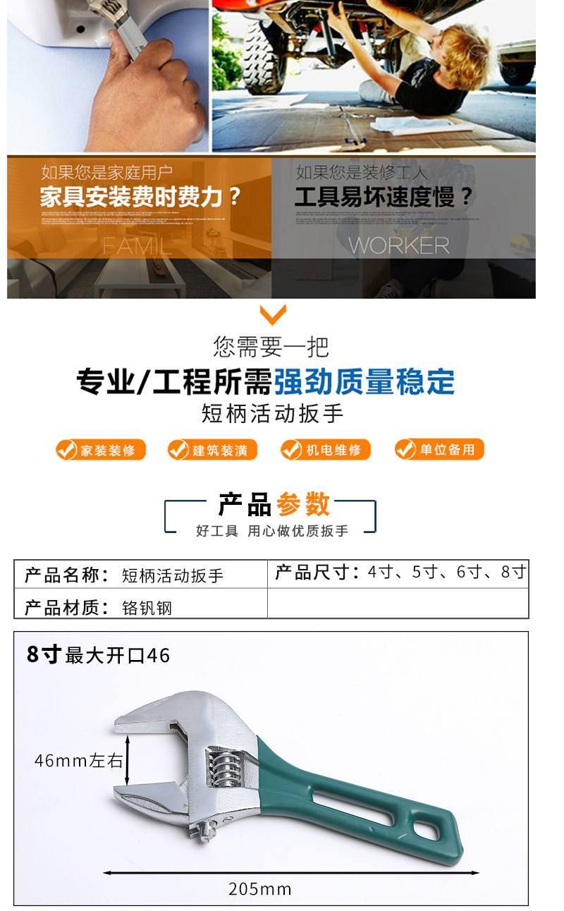大开口短把活口板手到家了,看那么多人买,我也买了,质量应该好,这么大口的留着备用,店铺已收藏,物流厂家都给好评。