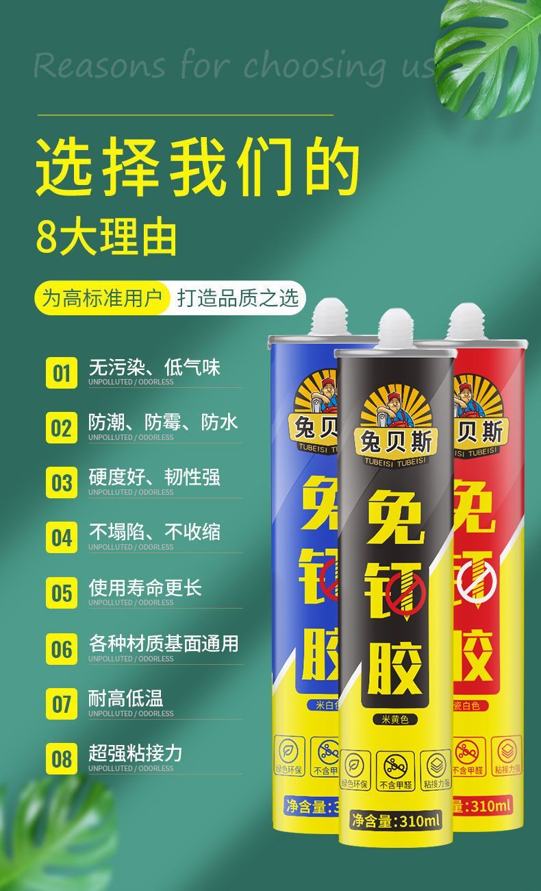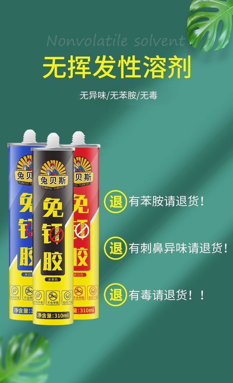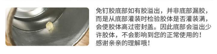 免钉胶收到了,物美价廉,经济实惠,质量很好,用起来很好。质量粘度都可以,没有异味。此商商家值得拥有,值得信赖,值得购买,值得推荐。