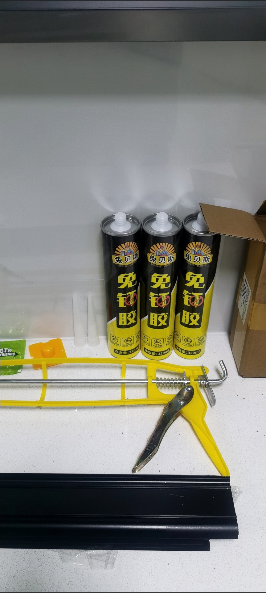 不好意思有事评价晚了,收到货感觉良好,配套周到齐全,胶,枪,手套,小刀等都有,生产日期新近。用于台风打碎的玻璃窗修补。服务良好,包装完好,快递给力,好评!