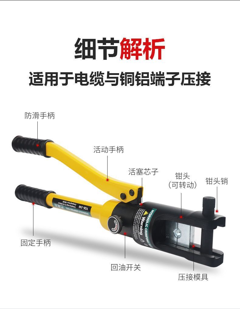 yuhuan hydraulic pliers manual hydraulic crimping pliers copper aluminum nose cold end electrician pressure mouth pliers for construction site wiring YQK-70