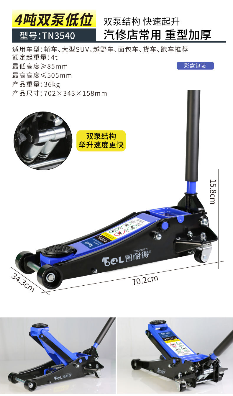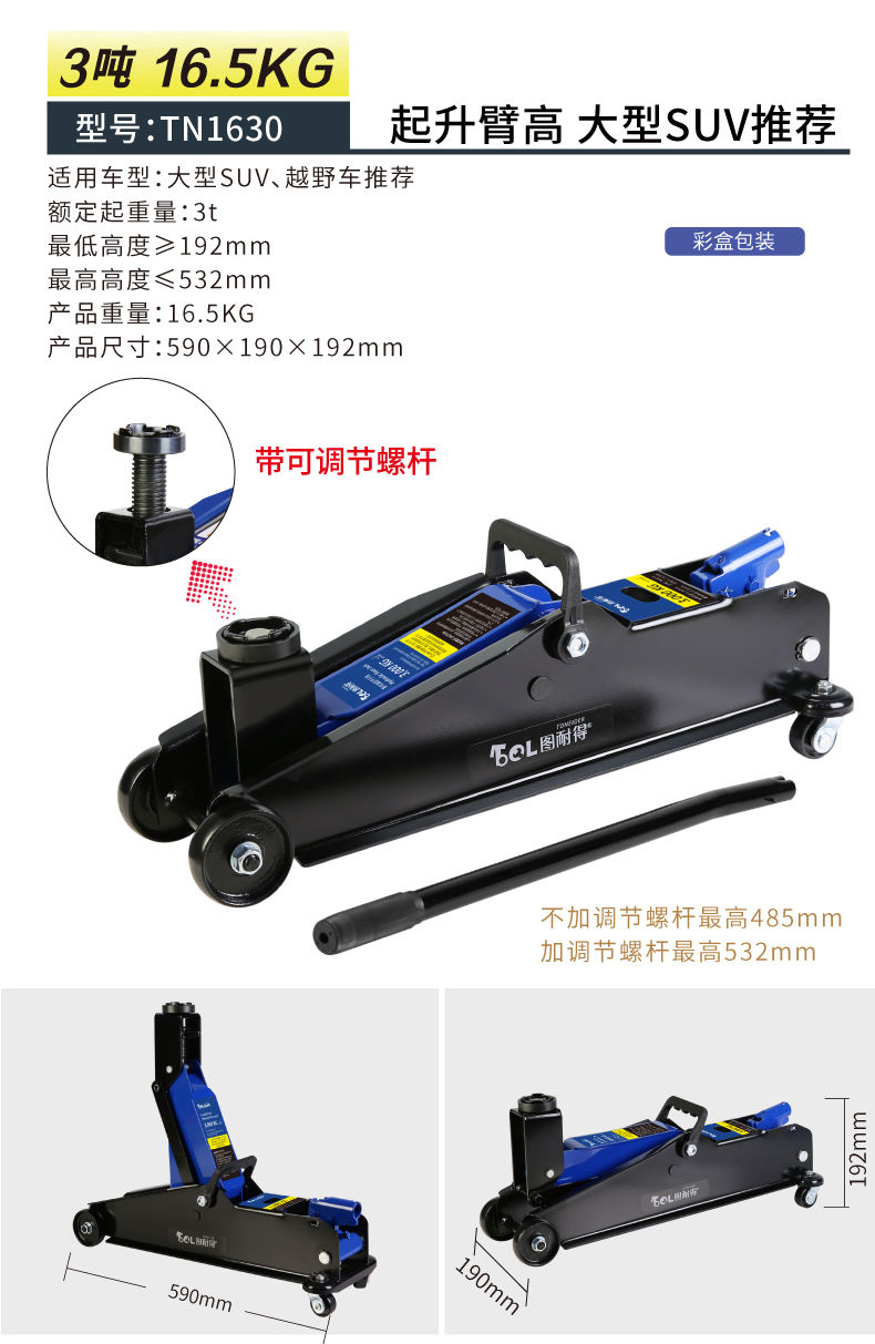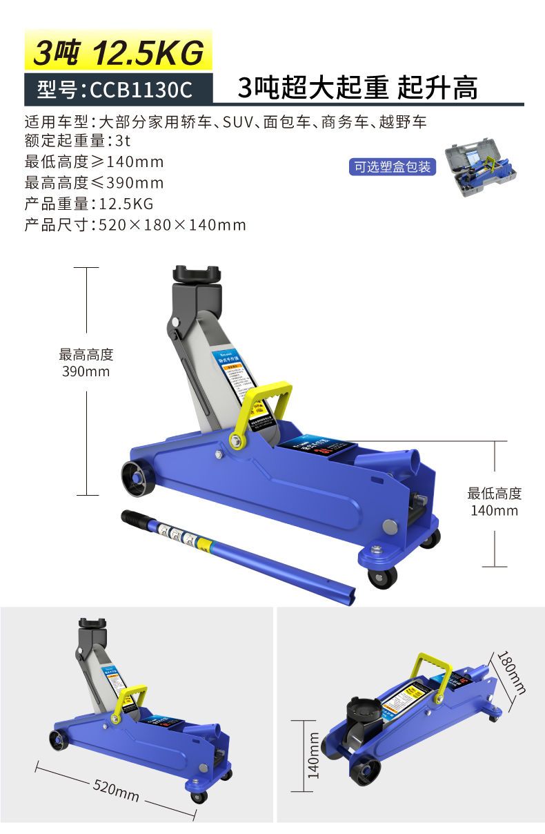 千斤顶已收到,试了下,各种车型都可以使用,使用起来很方便,快捷,省力。有需要还会再来!