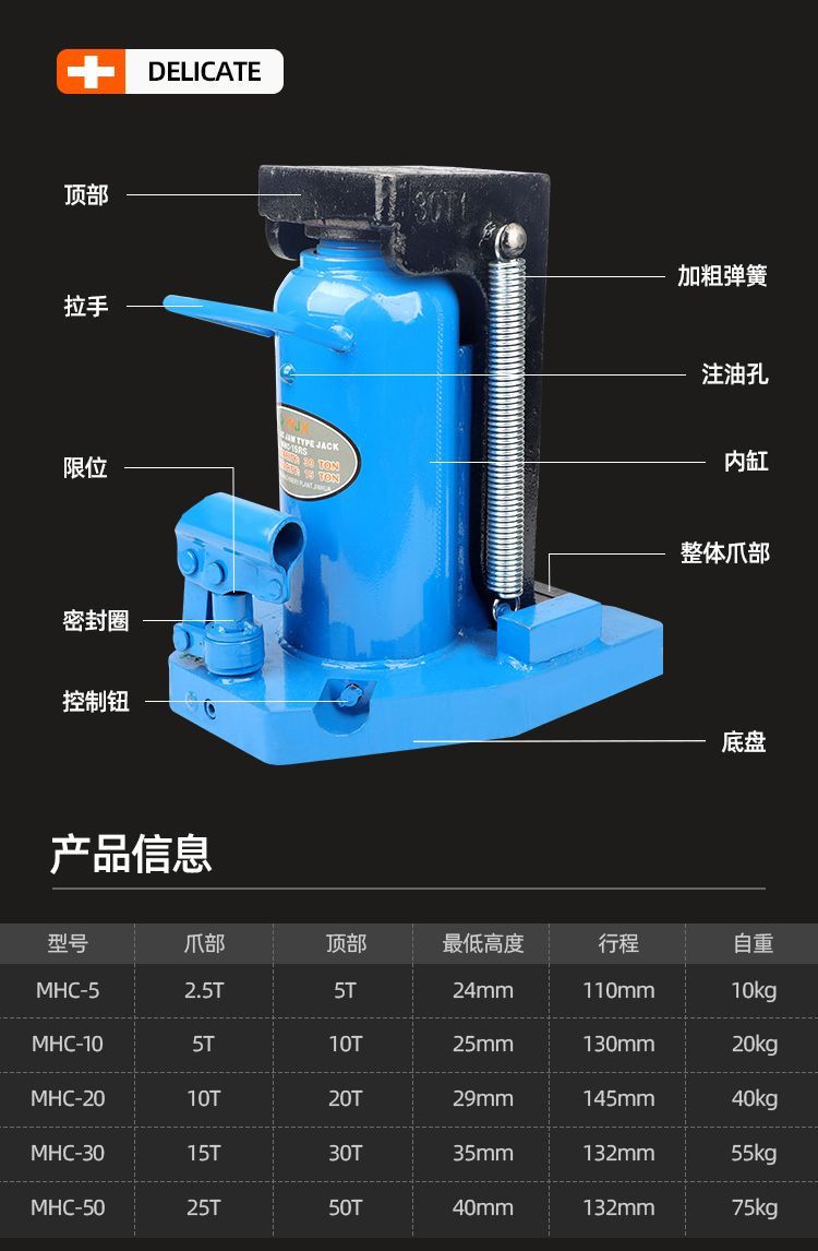 imported claw jack hydraulic 30 t tons 50 vertical span 5 T10T20 hydraulic low-level heavy-duty road lifter for aluminum film, 5 tons to 2.5 tons
