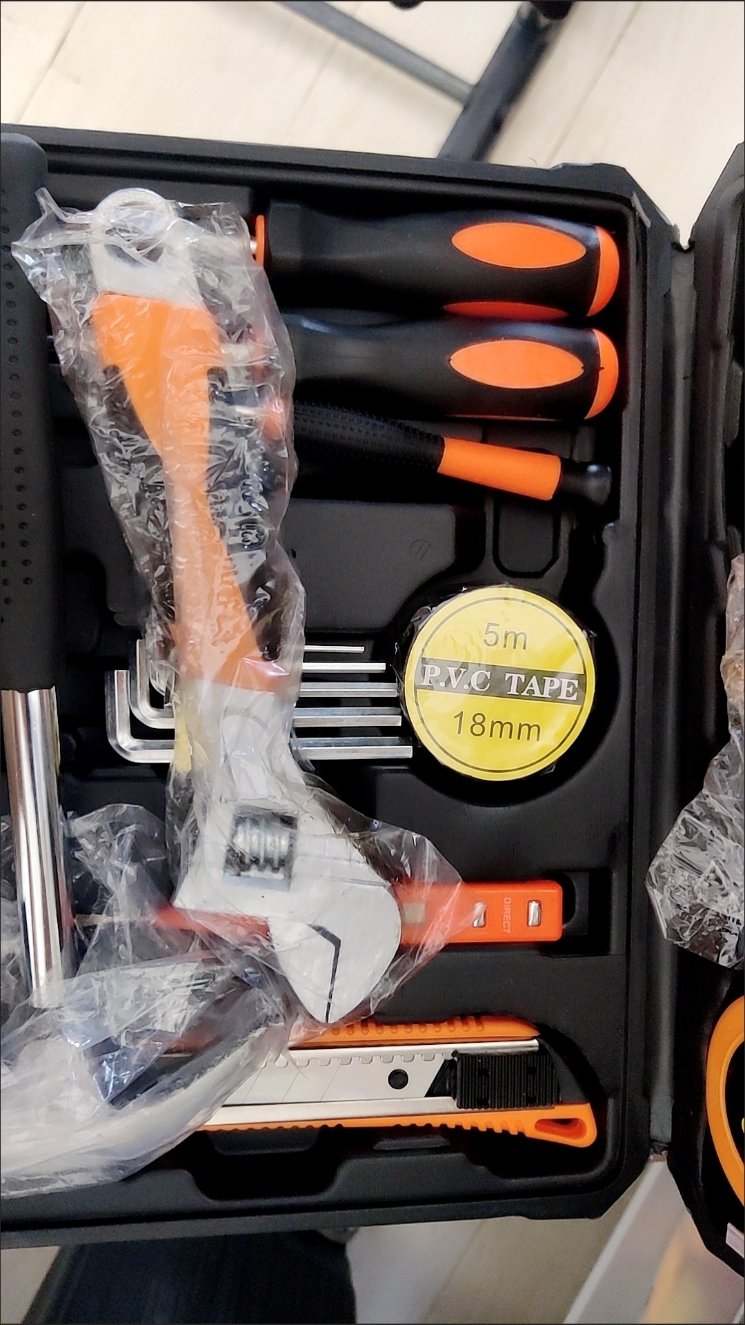 货收到了,物流很快,质量很好,正品保证,种类很全,包装很好,材质很好,物美价廉,做工完美,商家服务态度很好,工具非常实用,家庭必备,找了很多家,都是单卖不成套卖,终于有幸看到这里有我想要买的成套工具,还带工具箱,会回购的,一次完美又满意的购物体验,赞!