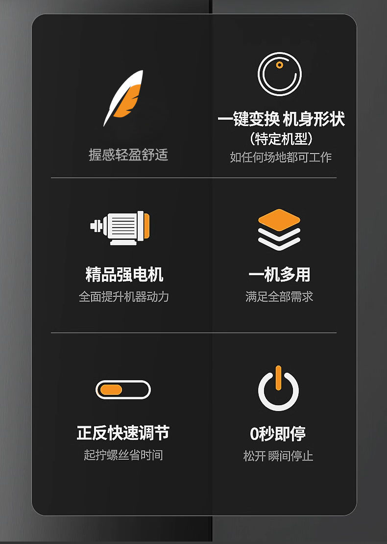 使用顺手,扭力很大,设计合理,经济实惠,手感很舒适,充满电了自动熄灯,我已经有的改刀头均可互换,妥妥的好评[点赞][点赞][点赞][点赞]
