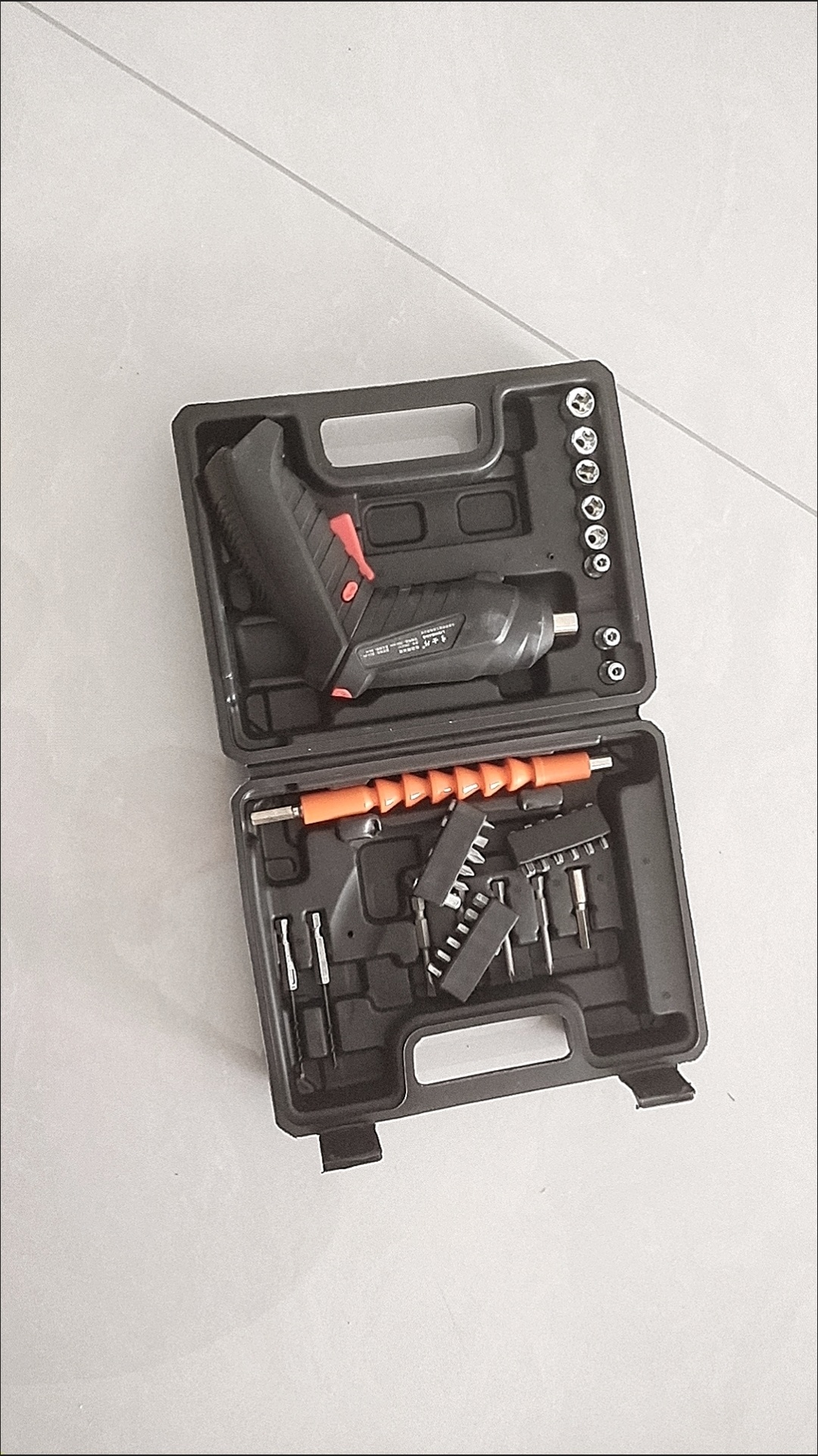 手电钻工具箱收到了,不错,钻头齐全,手电钻比较小巧玲珑,以后上螺丝就省劲了,老板很好,百问不厌,使用后再追评