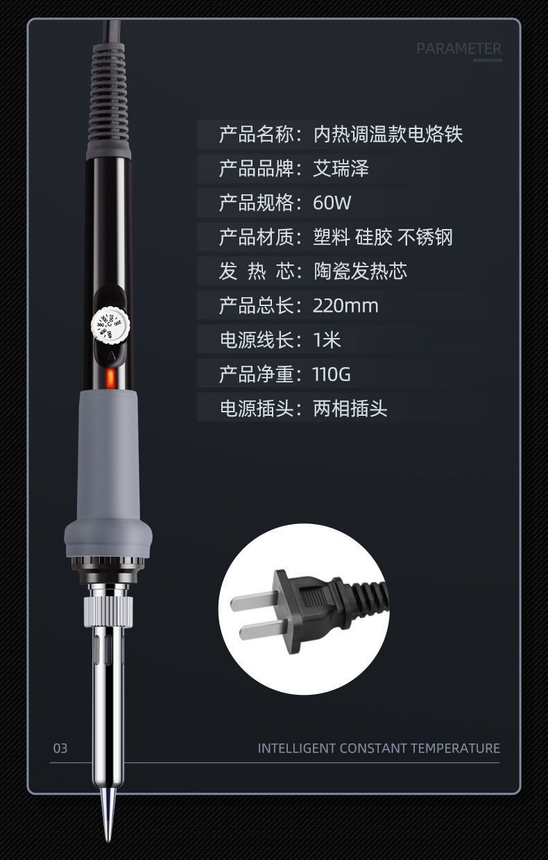 ariza electric soldering iron constant temperature set adjustable temperature electric soldering pen soldering gun repair welding tool electric iron 60 W thermostatic and anti-static official combination