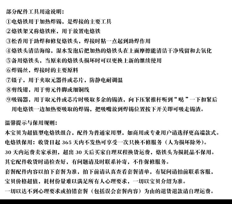 老铁没毛病,不错的烙铁,还有松香,焊锡,支架等物品,家庭必备工具,物美价廉,建议购买